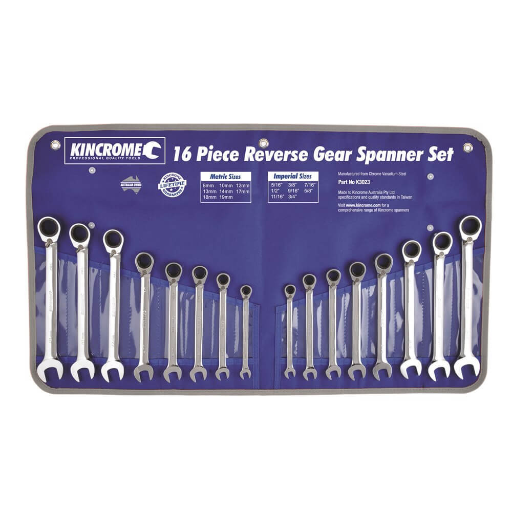 Kincrome 16 Piece Combination Gear Spanner Set Metric & Imperial - K3023