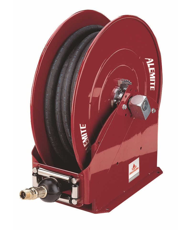 Alemite 1" ID spring rewind hose reel, c/w 15m x 1" ID hose