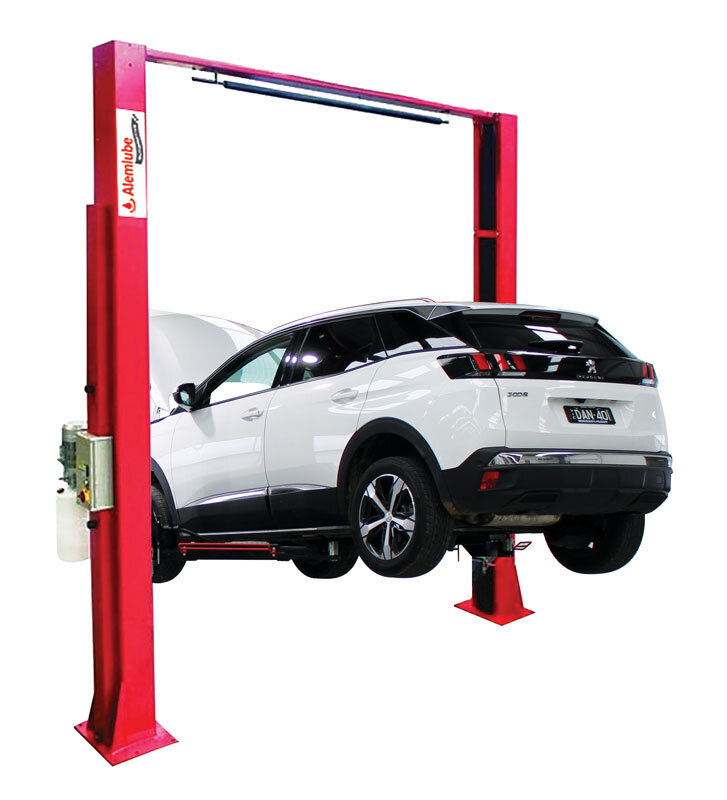 • The new Alemlube Automotive AA50CF2PN Clear Floor 2-Post 5t Hoist allows for quick and easy under vehicle service operations.