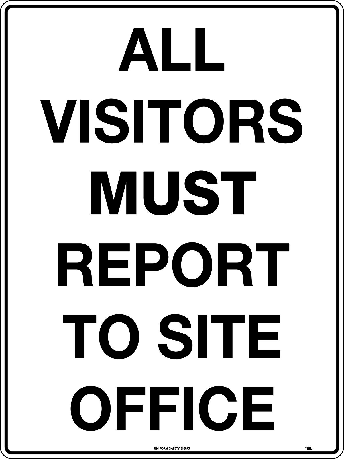 All Visitors Must Report to Site Office Safety Sign (Corflute) - 600 x 400mm