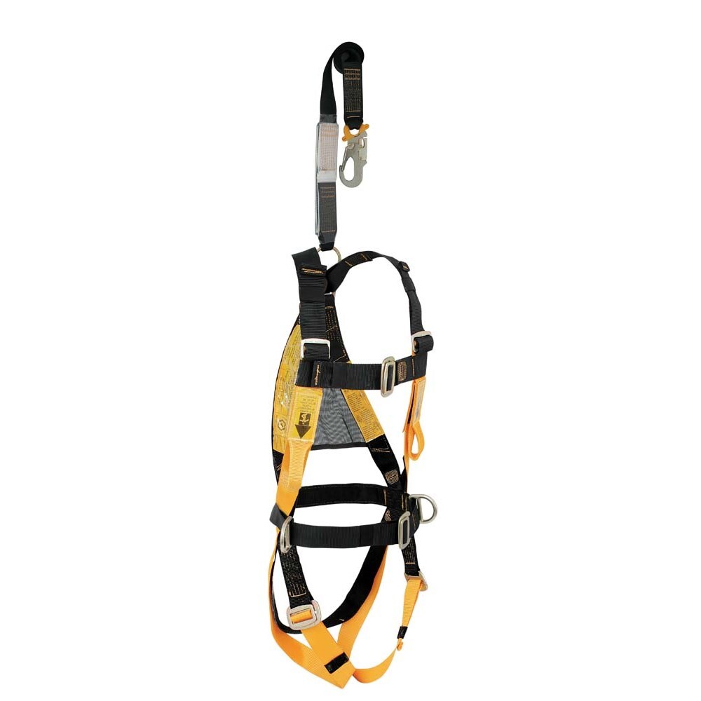 Full Body Harness c/w Front and Rear Fall Arrest attachment points, waist belt f/w side Dee’s and an integrated energy absorbing lanyard.