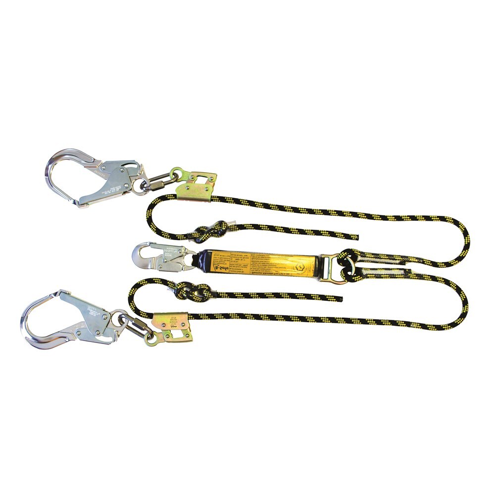 B-Safe 2m shock absorbing and adjustable twin lanyard with Kernmantle rope and aluminium snap/scaffold hooks.