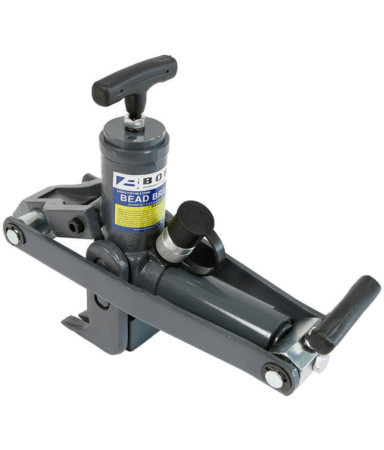 This Borum Industrial Hydraulic Bead Breaker is designed to work on most rims up to 26".  It is expressly intended to be used as an aid in breaking the bead seal between a tyre and it's one, two or three piece wheel rim for the purpose of reseating a bead seal, replacement of tyre or wheel and replacing tyre valves, tyre tubes etc.  This Borum Industrial Hydraulic Bead Breaker can perform tyre work or tyre replacements without ever removing the wheel from the vehicle. This quality unit is excellent for in-the-field use on agricultural machines.