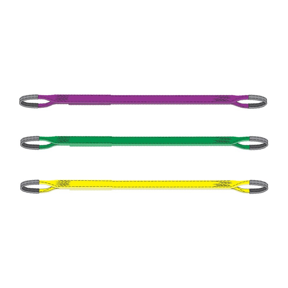 Beaver flat slings, commonly known as webbing slings, are an all-purpose lifting sling enabling the strong and non-damaging lift of a load. They are extremely lightweight and flexible. These flat slings are made from polyester webbing sewn into a continuous length, with an eye at each end. When used, they cover a broad support area, which cushions the load against damage and reduces slipping. The low stretch characteristics of the polyester webbing also prevent "load bounce" when hoisting very heavy weights.