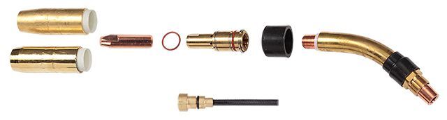 Front-end consumable spare parts to suit Bernard 400 style MIG welding torches. No quality short-cuts, designed for consistancy and long-life. Includes gas nozzles/shrouds, necks, insulators, gas diffusers, tips holders, head assemblies, liners & o-rings.