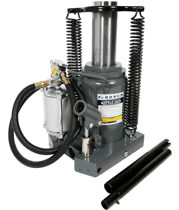 Borum Industrial Quality Air/Manual Bottle Jacks are designed to operate either manually or pneumatically. The manual function allows for normal operation anywhere, even without an air supply.