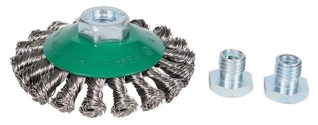 Bevel wire brushes with angled saucer shape; Ideal for accessing corners etc. Twist-knot wire for aggressive removal of rust, scale, burrs, etc. Manufactured to a high standard for demanding industrial use. TAIPAN ...the brand with bite!