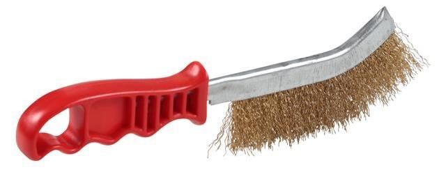 Red Plastic Handle Brass Coated Hand Brush- 1 Row