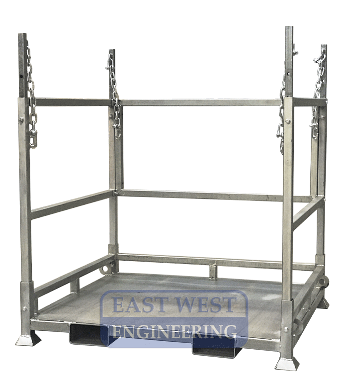 The SKB150 Bulk Bag Stand is designed to safely hook open a bulk bag for filling.  Featuring a sturdy base with fork pockets and crane lugs, this bulk bag holding frame provides an effective solution for collecting, storing & transporting recyclable, industrial, excavation and site waste by forklift and crane or can be used as a bulk material filling station.
