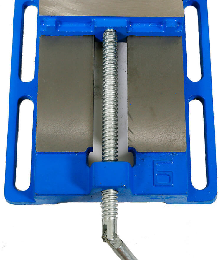 Made with a durable cast iron base, this TradeQuip "Made for the Trade" Drill Press Vice holds fast with its forged 125mm steel jaws to reduce vibration when drilling. This vice is built to be fastened right onto your drill press table with convenient built-in bolt-down slots. The replaceable cross-grooved steel jaws have a strong grip and will prevent work pieces from moving around once clamped in place. The high strength iron base along with the elongated mounting holes provides stability as well as easy position adjustment on most drill press tables.