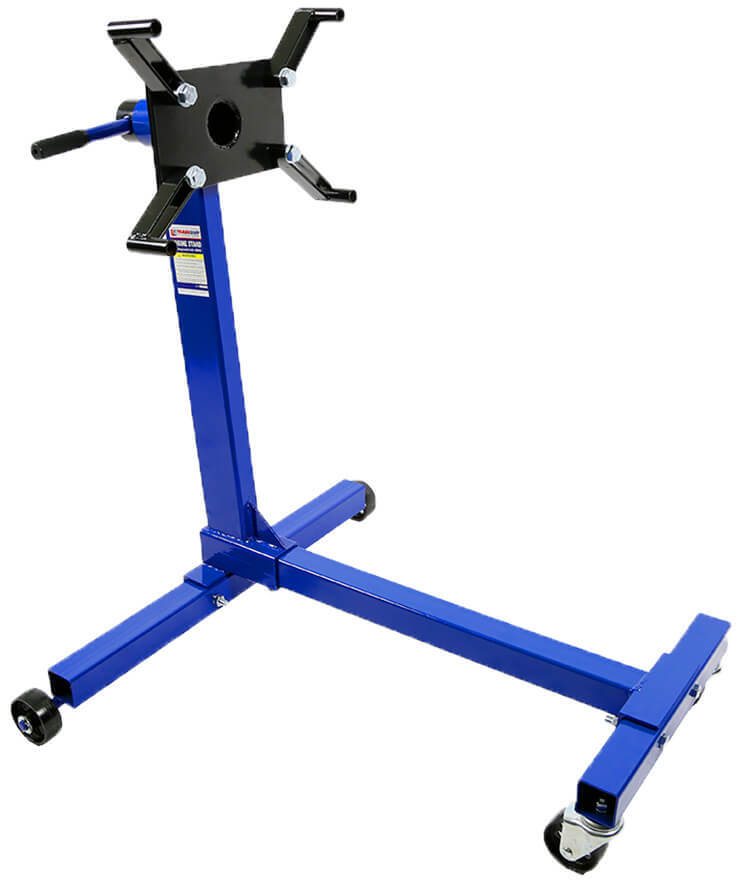 TradeQuip "Made for the Trade" 450kg Engine Stand has a 4-leg design featuring a rugged frame with a 4-hole mounting head that rotates 360°, making the unit ideal for 4,6&8 cylinder engines. When you've got an engine repair job that can’t be completed while the engine block is in the vehicle, this engine stand provides a sturdy support structure to secure the removed engine in mid-air, so you can access any part of it. Use an engine crane to remove the engine from the vehicle, then mount it to the faceplate on this engine stand.