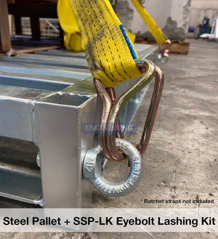 • SSP-LK Eyebolt Lashing Kit allows loads to be safety secured to a pallet (straps not included)