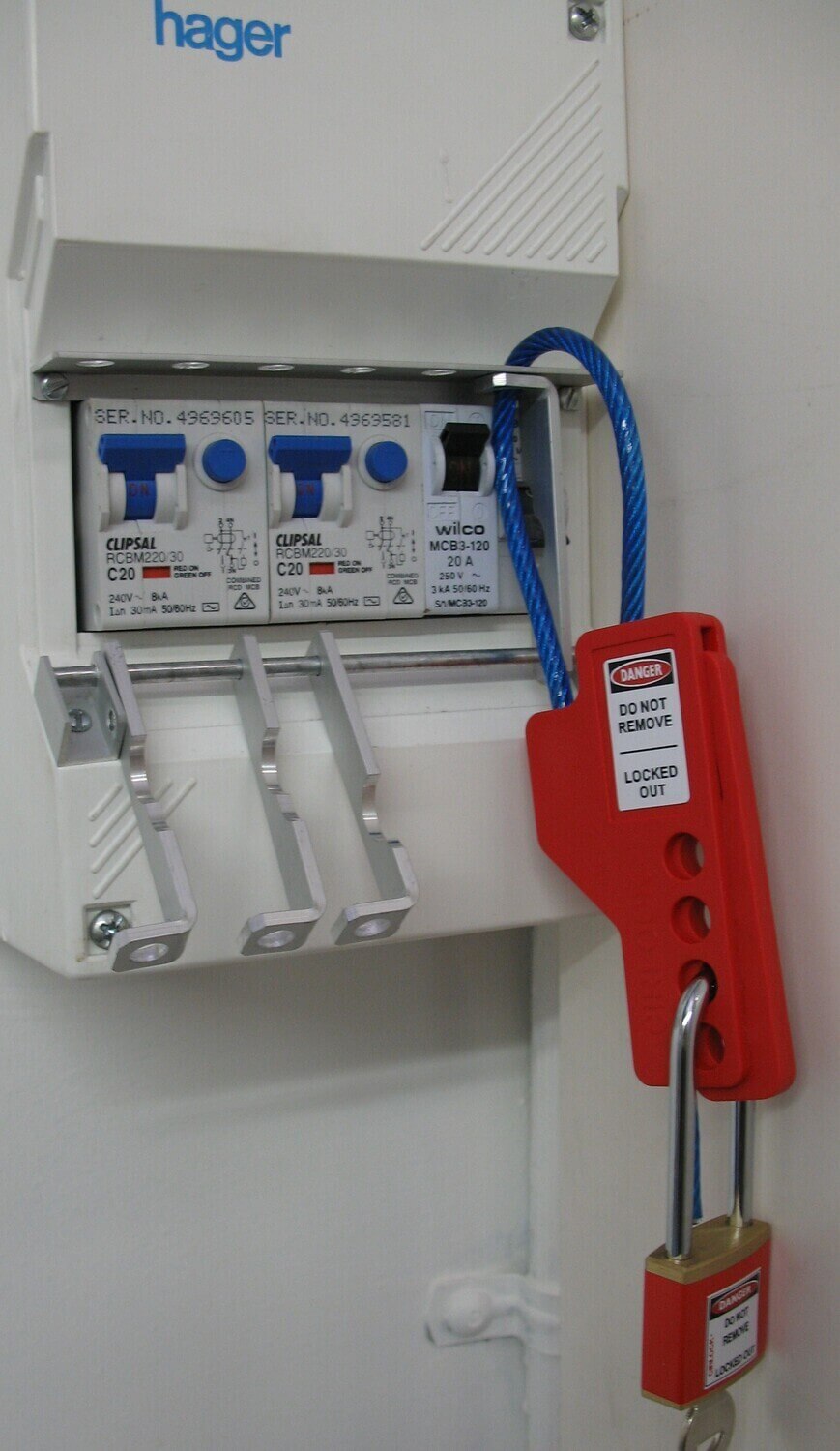 Application: Cable Lockout Hasp enables up to 4 workers to lock out the same point.