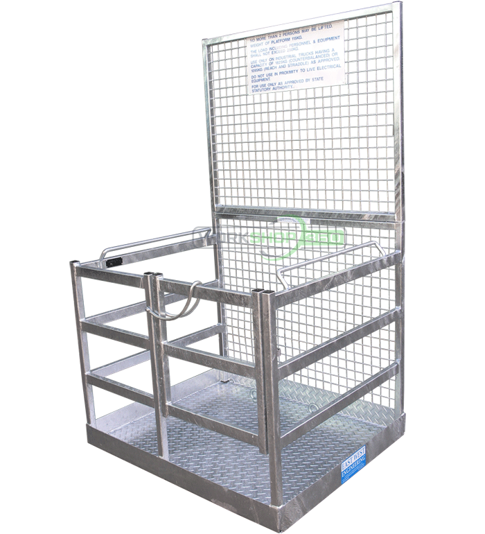 The WP-G Forklift Work Platform is designed for forklift use to safely carry out tasks of short duration and occasional usage, such as maintenance.  This safety cage is suitable for up to two people and is manufactured in accordance with Australian Standard AS 2359.1.