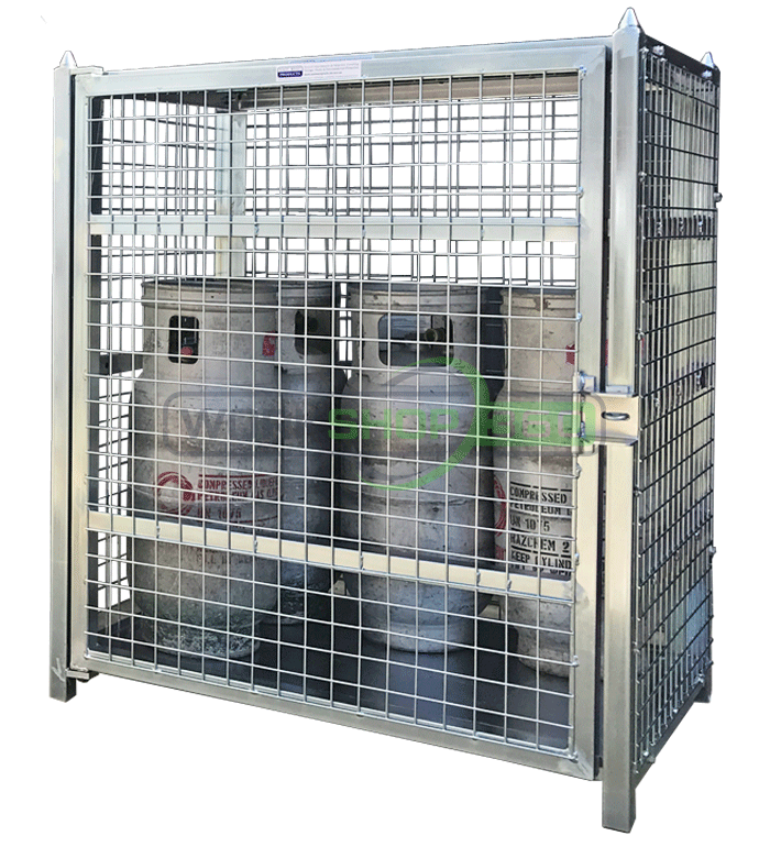 The SGB129 Gas Cylinder Storage Cage is a heavy duty lockable cage ideally suited for storage of up to 12 x 9kg BBQ gas bottles.  The bolted centre shelf and vertical supports can be excluded during construction for storage of up to 6 x forklift gas cylinders.  This stoage cage is also suitable for other uses like firewood storage in service stations where easy access and excellent security is a requirment.