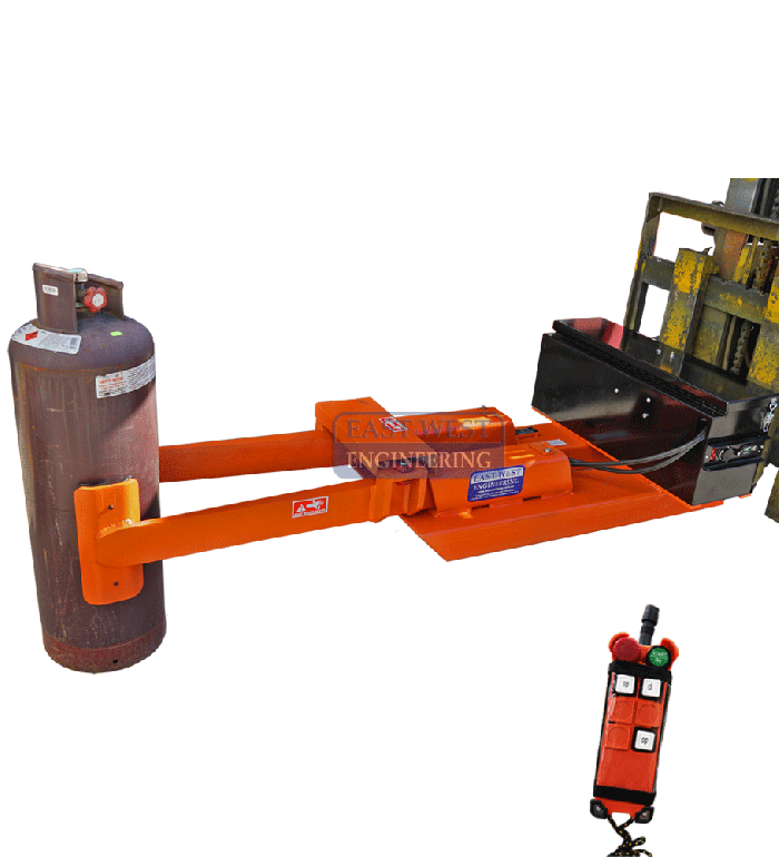 The HGA01-HPP Gas Cylinder Grab Attachment is designed to safely grab, lift and transport gas cylinders of most sizes around the worksite.  Its long arm design allows the operator to easily load and unload from a pallet or truck.  This lifter can pick a single gas bottle from a pallet or gas cylinder bay without disturbing the others.