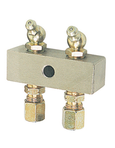 Header block 2 outlet c/w 6mm fittings and grease nipples