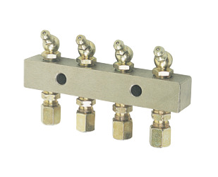 Header block 4 outlet c/w 6mm fittings and grease nipples