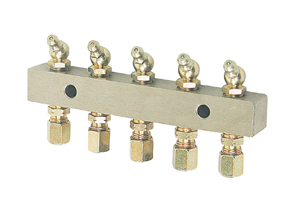Header block 5 outlet c/w 6mm fittings and grease nipples