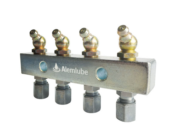 Alemlube Header Block w/ Fittings and Grease Nipples (8 Outlet) - 6mm