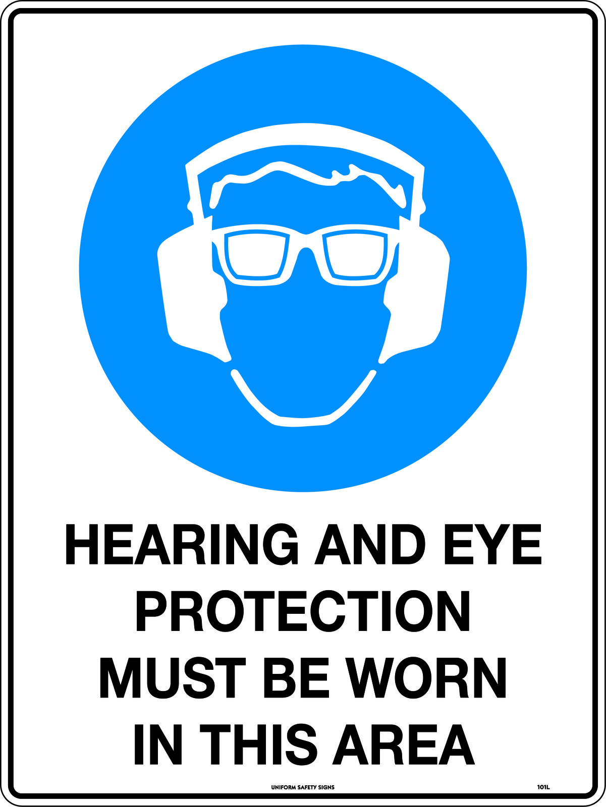 Hearing And Eye Protection Must Be Worn Safety Sign (Metal - Class 1) - 600x400mm