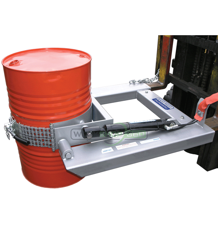 • Use with existing forklift to lift and rotate a drum 130 degrees, allowing for emptying of product