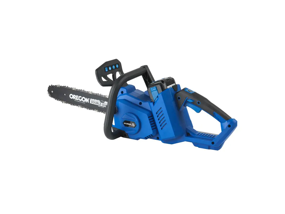 The HY40CS14 is a rechargeable low maintenance lithium-ion battery-powered chainsaw from Hyundai. HY40CS14 is the ideal battery powered chainsaw for pruning trees and bushes as well as cutting logs.