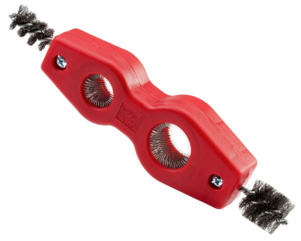 • High carbon steel brushes quickly clean ½" (12 mm) to ¾" (19 mm) nominal tube and fittings in preparation for soldering or brazing.