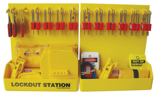 Lockout Station - Large Size w. Valve Lockouts and 20 Padlocks.