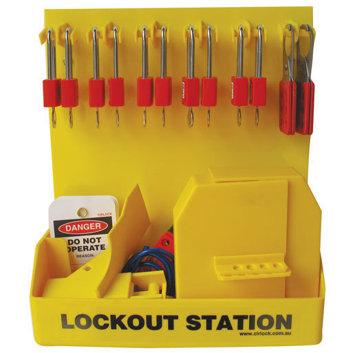 Lockout Station - Medium Size w. Valve Lockouts and 10 Padlocks.
