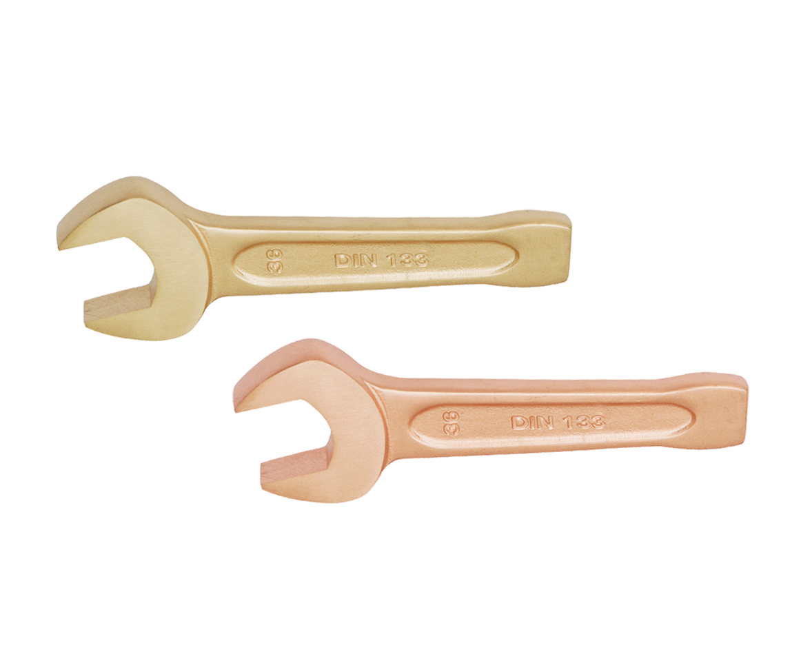 Widely used in a explosive and flammable place; the single head is used for fastening and removing one size hex key or square bolt and nut, and the side of handle is used for striking as hammer.