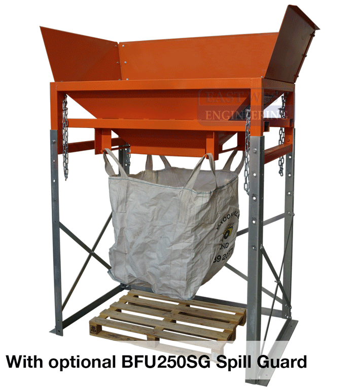 The BFU250 Bulk Bag Filling Frame saves hours of labour and reduces risk of injury. This frame is designed to safely hook open a bulk bag and fill with free-flowing bulk products such as sand and gravel etc, removing the need for the operator to hold the bag open or manually fill themselves.