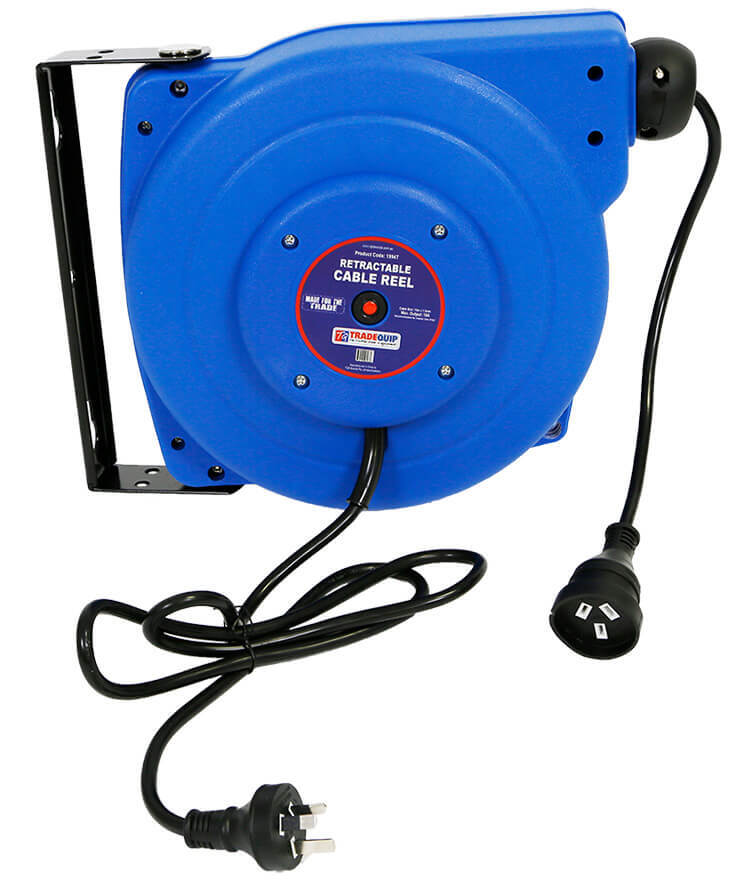 With this TradeQuip "Made for theTrade" extension cord reel mounted on a wall, floor or ceiling, you’ll eliminate tripping hazards and clutter on your garage or workshop’s floor.! Just pull out the needed length of cable as the reel’s locking ratchet system keeps the cable at that length while you work. Extend the cord up to 15 metres and when you’re done, give it a tug to retract it back to its durable polyethylene housing. Fitted with an Overload Safety Reset switch this extension lead ensures everything is kept safe.