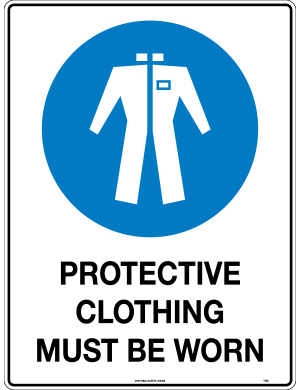 Protective Clothing Must be Worn Safety Sign (Metal - Class 1) - 600x400mm