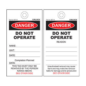 Cirlock PVC Danger Do Not Operate Tag (Pack of 100) - 140 x 75 x 0.7mm