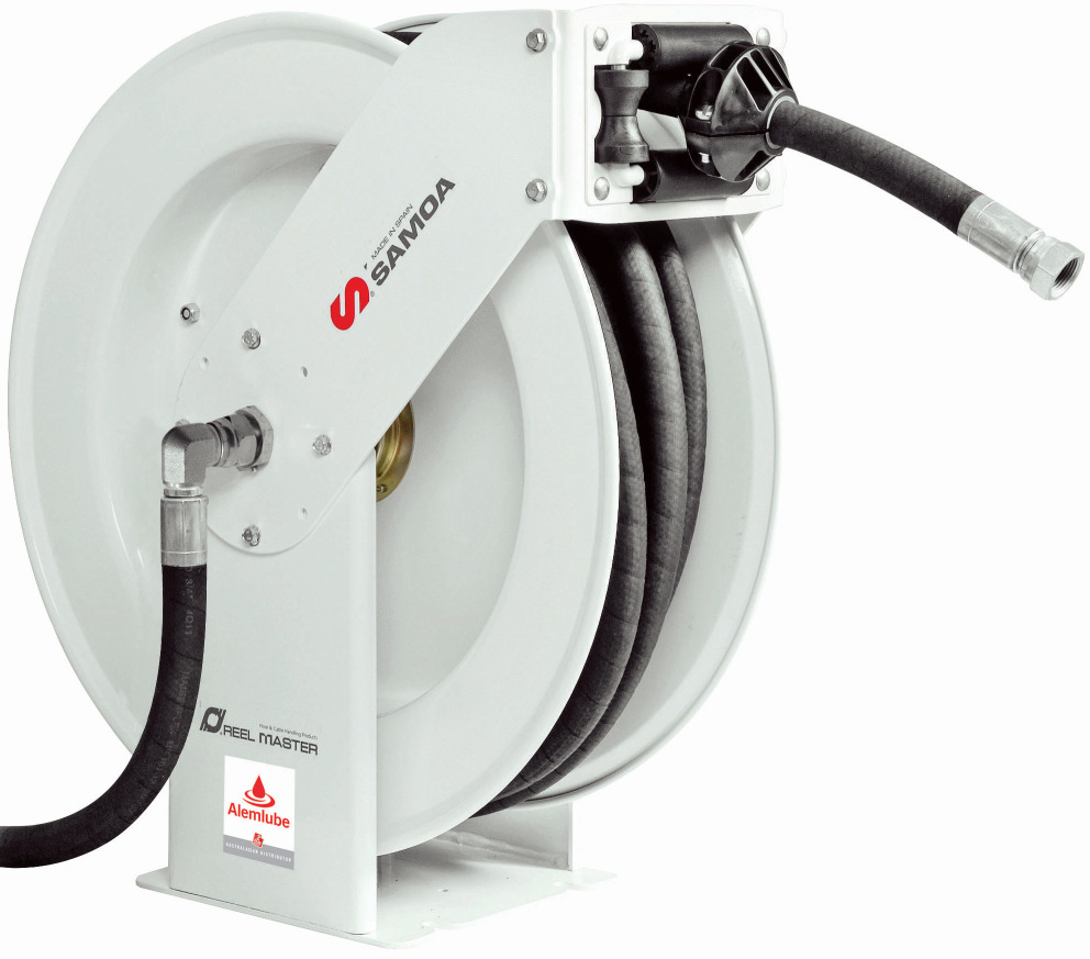 Samoa open oil reel complete with 20m x 12mm ID hose and hose stop STANDARD DUTY