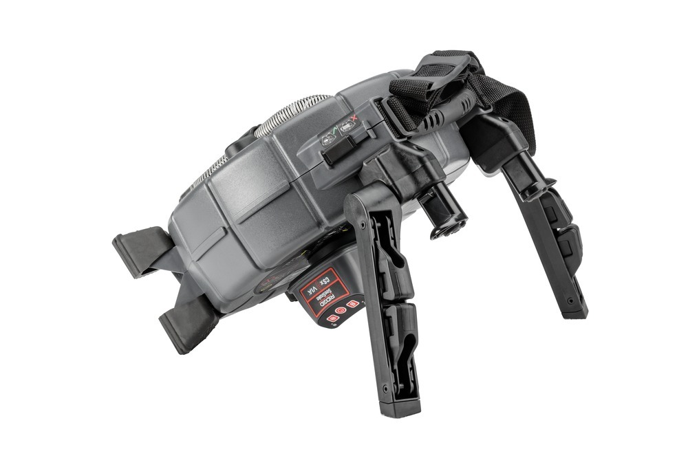 The RIDGID® SeeSnake® Kickstand provides optimal, in-use, positions that enhance the feed/retractability experience and allow for simultaneous use of the CSx Via™ with microreel™, microdrain® and nanoreel® models. The reel is supported while tilting backward in an angled position or by making a few quick clicks, the kickstand can change form to function as a horizontal frame which elevates the reel from the surface area.