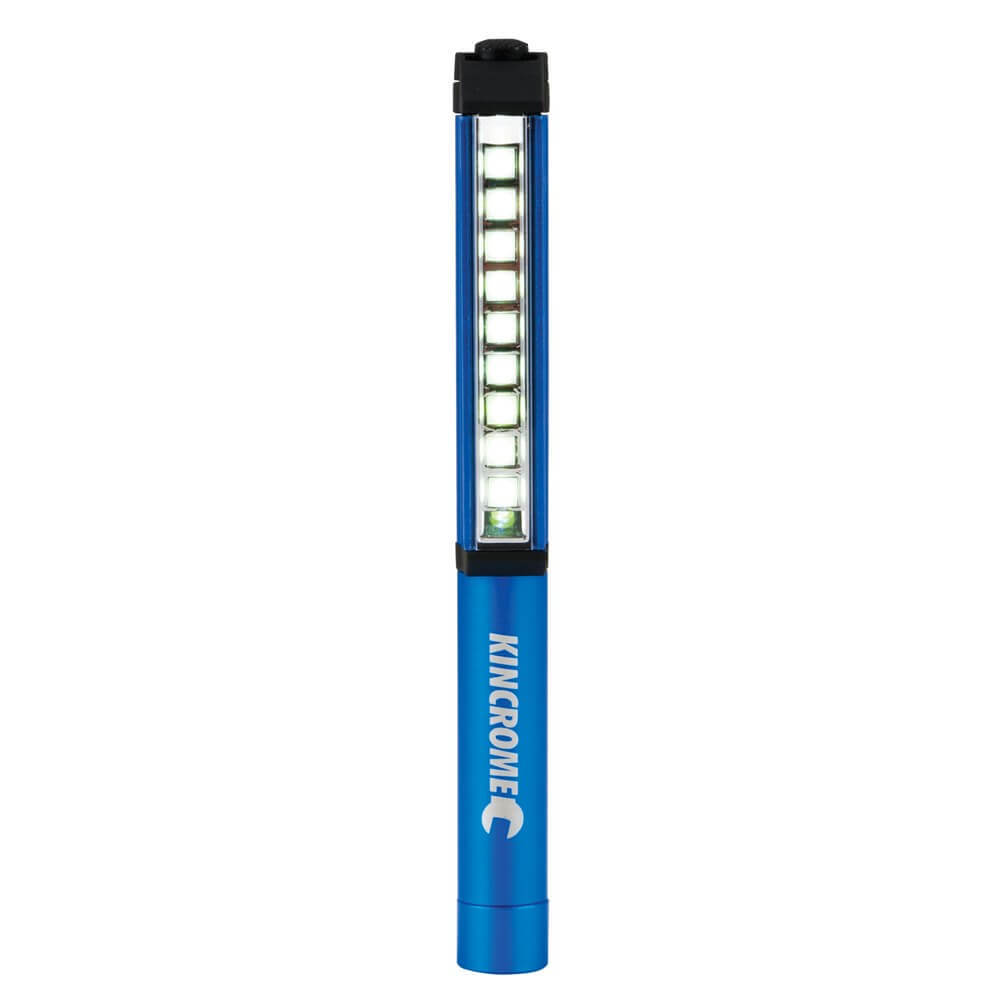 • The Kincrome Magnetic Penlight features 9 extremely bright SMD LEDs, a magnetic pocket clip for hands free work and a durable aluminium body.