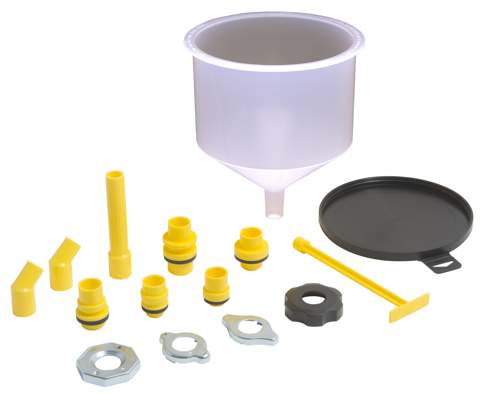The Spill-Free Funnel eliminates trapped air pockets which usually cause erratic cooling system and heater performance. It controls the proper amount of coolant entering system and enables unattended filling of the cooling system. The funnel eliminates squeaky belts caused by coolant overflow and protect the environment. Five adapters fit most domestic and import cars, light trucks and Ford vehicles. Straight extension and 45 degree elbows allow use on radiator caps that are placed at an angle or other hard-to-reach applications.