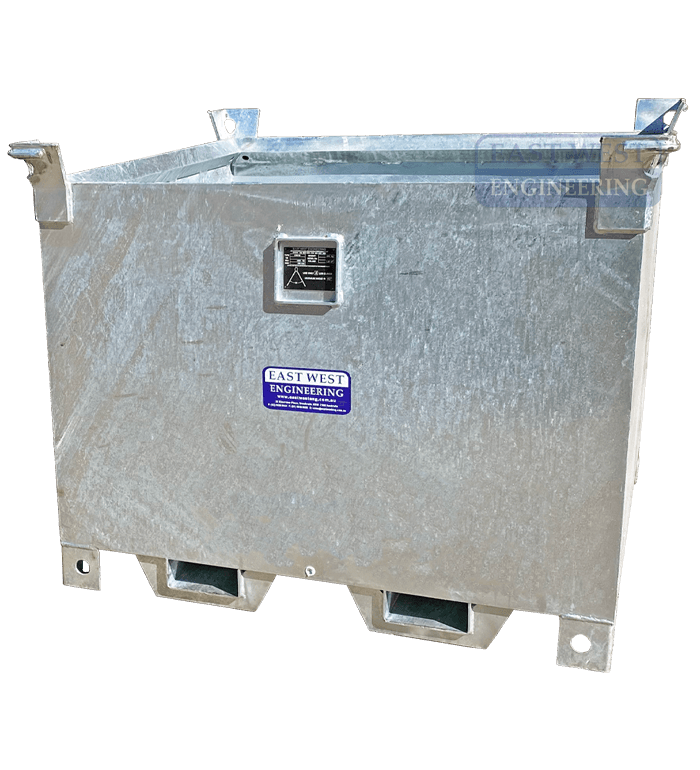 • Fork pockets fitted for transport around site or load can be emptied by a forklift fitted with rotator