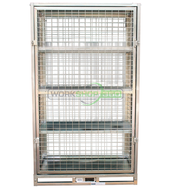 The SHC58 Storage Cage is a versatile multi-use cage with 1cu.m of useable space designed with removable shelves to suit your warehousing and storage requirements.  Its unique design incorporates a left or right opening gate which is totally removable if required.