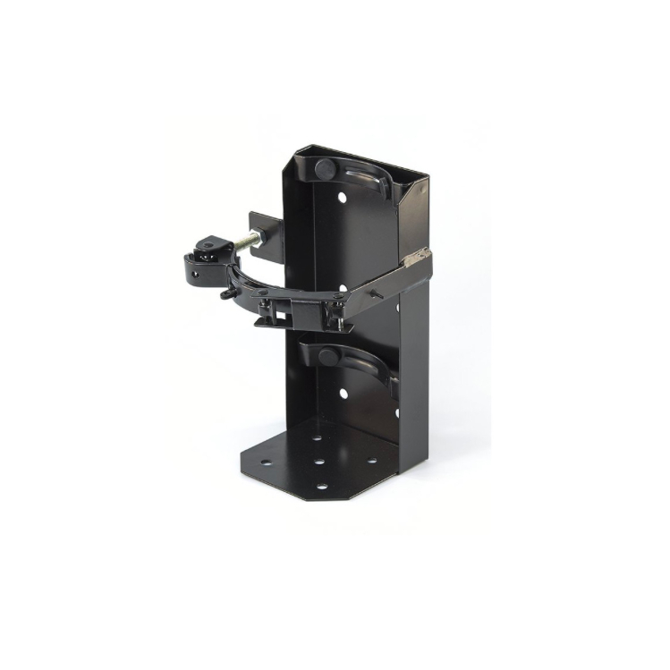 Workshop360 supply heavy duty black powder coated, secure, quick-release fire extinguisher vehicle brackets.