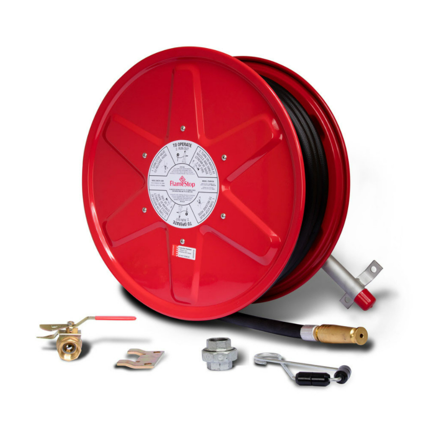 Ease of use and heavy duty parts make this Fire Hose Reel suited to almost any application. Our fixed Fire Hose Reel comes with all parts required: 25mm Ball Valve (including nozzle locking device), Hose Guide and Wall Bracket.