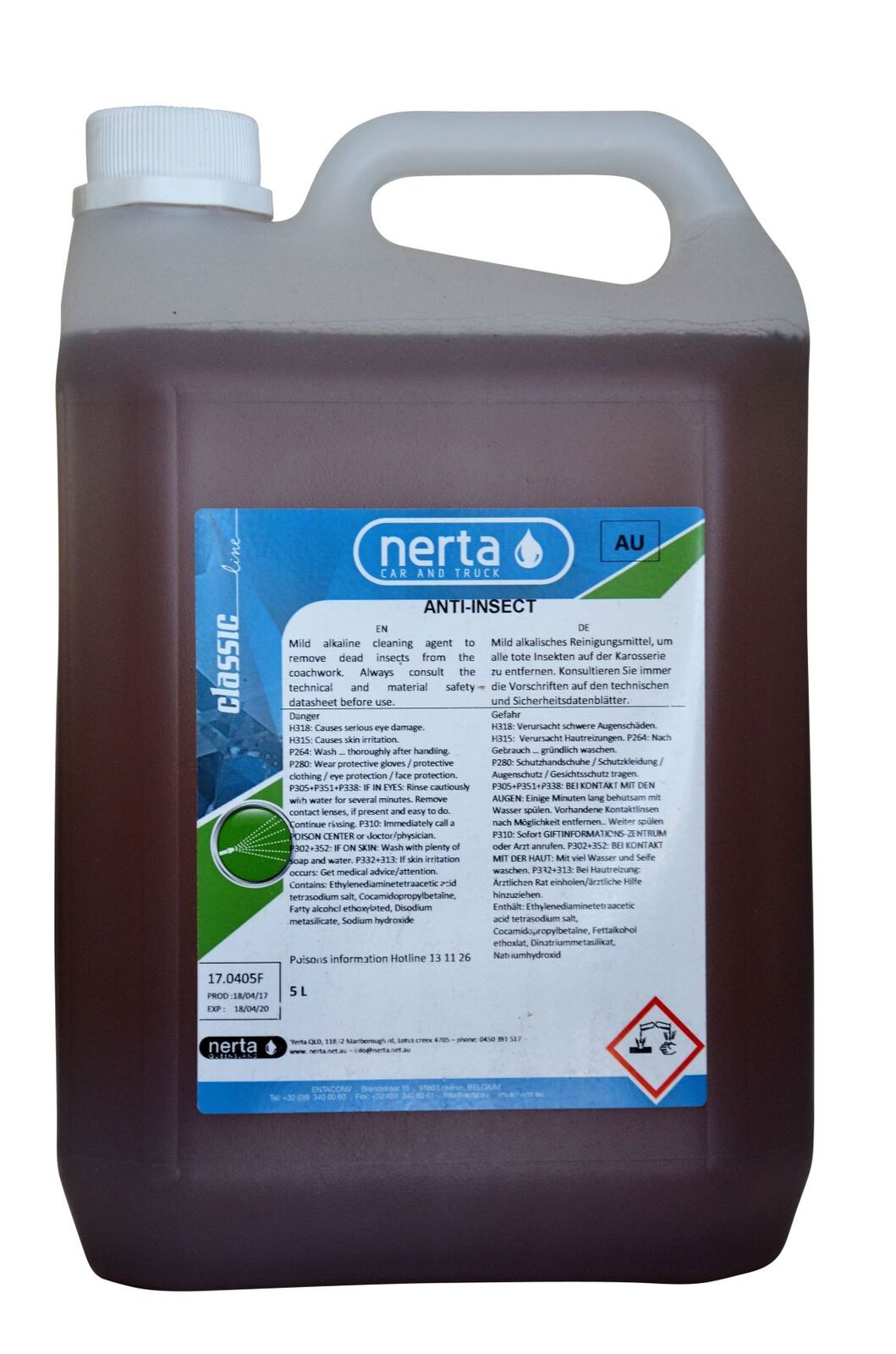 NERTA ANTI-INSECT is a unique, light alkaline detergent to remove dead insects from cars.