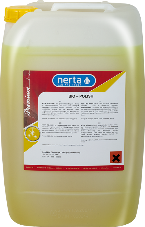 • Nerta Bio Polish is a concentrated gloss, drying and preservative agent, based on biodegradable cationic surfactants.