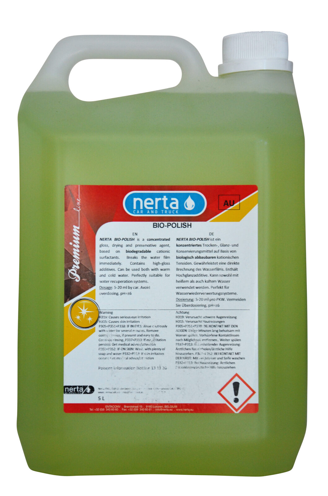 • Nerta Bio Polish is a concentrated gloss, drying and preservative agent, based on biodegradable cationic surfactants.