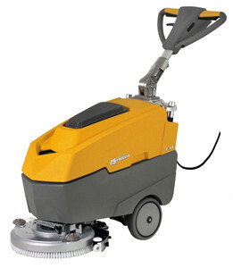 This is a compact yet fully professional scrubber drier.  Its brush is centrally located making it easy to clean next to walls on either side and around obstacles.