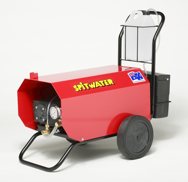 • To protect the pump from damage due to overheating is the inbuilt 100% bypass into cooling tank feature, unique to SPITWATER machines. Other protective features include a thermal overload which protects the electric motor if an electrical problems occurs and pressure gauge which easily monitors pump performance.