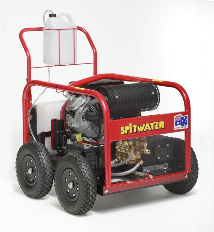 • The Australian made SPITWATER HP2430/AE is a reliable pressure cleaner designed for industrial use in a range of industries such as mining, agriculture and farming and transport cleaning. Built with an Interpump T2535 pump which has a pump pressure of 3500PSI/240BAR and 30 litres per minute and a 20HP genuine Honda GX630 petrol motor with a 10L Fuel Capacity and easy electric key start.