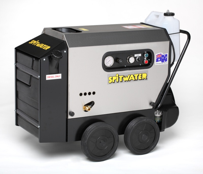 • Included features in the SPITWATER SW201 are the SPITWATER exclusive 100% bypass into cooling tank which reduces potential damage to the pump in bypass as well as a pressure gauge and washable inset water filter. The hot water is generated with a direct fired diesel burner, and the machine has a 24L Diesel fuel capacity.